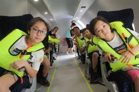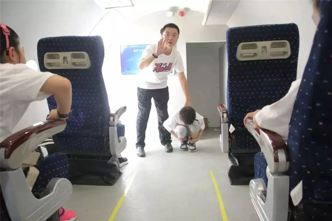 在飛機迫降體驗區(qū),孩子們走進機艙,在“迫降險情”發(fā)生的瞬間,先做出了減震自保的護衛(wèi)動作,第一排和后排的動作還有著不同的差別,孩子們一一做到;在更加緊急的情況蔓延時,孩子們又迅速取出救生衣穿好,氧氣面罩落下,孩子們也立即戴好;迫降時機來臨,艙門開啟時,孩子們立即彎下身體護住口鼻,在教官的指揮下有序逃離機艙。整個過程一氣呵成、有條不紊。