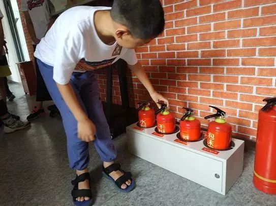 孩子們在觸摸式的火災模擬上不斷變幻著各種火災場景,跟著教官的滅火步驟,反復訓練著不同滅火器的使用方法,系統(tǒng)地了解了滅火器的種類和適用條件。