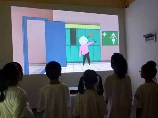 △第一次認識“洗消”標識的孩子們。進入地下城的第一步就是給自己清洗消毒,防止有害物質(zhì)蔓延。