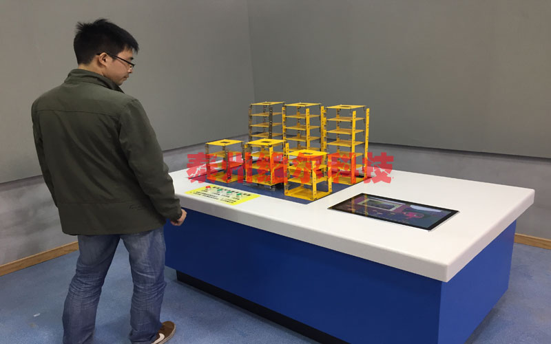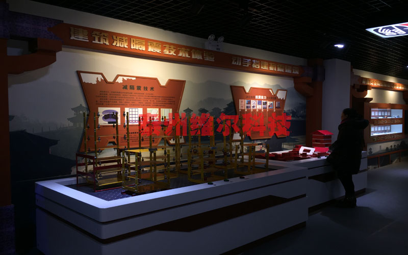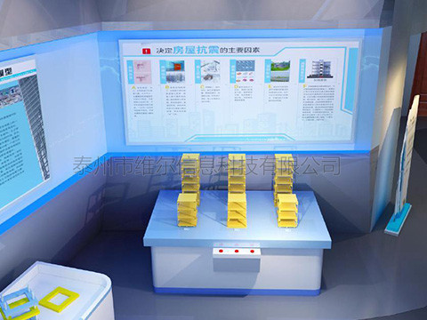 展項通過觀眾觀察在震動臺模擬地震的情況下采用不同減隔震技術(shù)的結(jié)構(gòu)的抗震表現(xiàn),讓參觀者了解建筑抗震的意義和基本方法。采用機電一體化演示六種抗震結(jié)構(gòu)和非抗震結(jié)構(gòu)在地震來臨時的表現(xiàn)。說明在建筑施工時采用抗震結(jié)構(gòu)能有效減少建筑物的形變。演示抗震減震技術(shù)原理,了解建筑減隔震的基本方法,提高大眾的抗震減災意識。