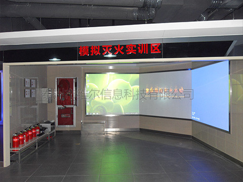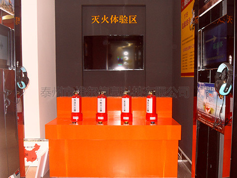 本體驗(yàn)系統(tǒng)是通過(guò)計(jì)算機(jī)主機(jī)、顯示設(shè)備(投影儀或平板電視)以及電子互動(dòng)配套設(shè)備三部分共同組成,可以使體驗(yàn)者通過(guò)手持真實(shí)的2KG滅火器,對(duì)墻面投影或電視機(jī)模擬的火災(zāi)場(chǎng)景進(jìn)行滅火體驗(yàn),手中的滅火器噴向哪里,畫面中哪里的火就會(huì)被熄滅,在限定的時(shí)間內(nèi),如果全部火熄滅,則滅火成功,否則提示滅火失敗。本系統(tǒng)中通過(guò)對(duì)不同場(chǎng)景的識(shí)別選擇滅火器,互動(dòng)體驗(yàn)的同時(shí)又能學(xué)習(xí)到各種滅火器的使用知識(shí),充滿樂趣,常用于相關(guān)行業(yè)展廳體驗(yàn)、科普館及青少年兒童體驗(yàn)館、知識(shí)培訓(xùn)機(jī)構(gòu)等場(chǎng)所。 在展廳中選定位置,墻面安裝顯示設(shè)備,如大屏液晶電視,或投影儀投影,設(shè)置1個(gè)臺(tái)面,供參觀者使用,臺(tái)面有5個(gè)按鈕,1個(gè)知識(shí)學(xué)習(xí),4個(gè)場(chǎng)景畫面按鈕各一個(gè)。當(dāng)參觀者到來(lái)后,按“知識(shí)學(xué)習(xí)”可以快速學(xué)習(xí)滅火知識(shí),按4個(gè)場(chǎng)景的按鈕就可以進(jìn)行滅火體驗(yàn)了。