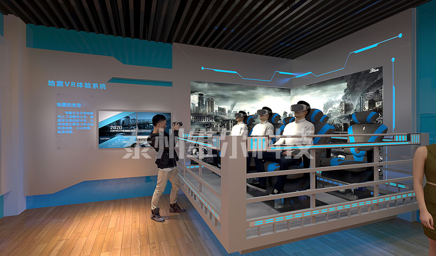 VR earthquake platform 本產(chǎn)品是利用頭戴式VR虛擬現(xiàn)實(shí)系統(tǒng)與地震平臺(tái)系統(tǒng)相結(jié)合的一款用于體驗(yàn)地震等災(zāi)難體驗(yàn)及學(xué)習(xí)災(zāi)難知識(shí)的互動(dòng)產(chǎn)品。常規(guī)情況下,體驗(yàn)臺(tái)能夠乘坐9-12人 (可定制) 產(chǎn)品分為硬件模組與軟件模組。硬件模組分為,頭部顯示系統(tǒng),地震特效系統(tǒng),環(huán)境特效系統(tǒng), 安全輔助系統(tǒng)數(shù)據(jù)處理系統(tǒng)六大部分。 影片全長(zhǎng)3分鐘,第一部分是VR地震知識(shí)介紹3D動(dòng)畫,向觀眾介紹地震是什么,地震形成原因,地震來(lái)了怎么避險(xiǎn)。第二部分是VR地震體驗(yàn)3D場(chǎng)景,首先感受室內(nèi)地震畫面,室內(nèi)吊燈掉落,墻面裂開,室外房屋倒塌、地面塌陷、汽車碰撞 一片火海;讓觀眾身臨其境地感受地震的巨大破壞性,同時(shí)了解在地震中如何躲避逃生及自救。 運(yùn)用場(chǎng)景:可以在各大安全教育展廳,學(xué)校等教育領(lǐng)域.