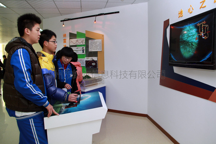 展品通過虛擬現(xiàn)實的展示方式,將觀眾帶入到現(xiàn)實中無法企及的地底世界。依次通過地殼、上下地幔、外內(nèi)地核穿越地心,再從地心出發(fā)從另一個方向回到地球表面。 展品以3D效果向觀眾展示地球內(nèi)部的結(jié)構(gòu)。讓觀眾跨越數(shù)以億年計的地層,體驗身臨其境的視覺效果,暢游地心內(nèi)部、通過操控三維虛擬現(xiàn)實軟件來了解地球內(nèi)部與地心的無窮奧秘。在整個操作過程中有逐步深入地心的科學知識學習又有飛速行駛的體驗。 展品尺寸:長寬高400×300×700mm 互動方式: 觀眾站在控制臺前,通過控制桿控制前進、停止、后退,也可左右擺動觀察周圍的環(huán)境。當你到達哪個地層時,多媒體會介紹該地層的相關(guān)參數(shù),如溫度、壓力、地質(zhì)構(gòu)造等.