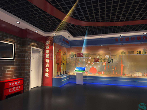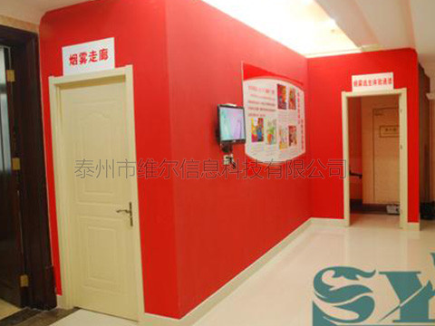 這是個讓演練者體驗如何從火災(zāi)中正確逃生的系統(tǒng)。這個系統(tǒng)可以告訴演練者在火災(zāi)時應(yīng)該如何選擇正確的路線,按照正確的方法進(jìn)行逃生,尤其要告訴演練者的是,在有煙霧的環(huán)境中逃生時,一定要用濕毛巾或其它紡織物捂住口鼻并盡量蹲著走,否則會大量吸入煙造成窒息。 體驗者進(jìn)入展區(qū)后,由控制系統(tǒng)會自動控制燈光熄滅,周圍墻壁上出現(xiàn)火苗,音響播放火的音效,將體驗者置入模擬火災(zāi)現(xiàn)場,2秒鐘后,進(jìn)入模擬疏散出口上方的安全出口標(biāo)志燈亮,體驗者開始進(jìn)入模擬火災(zāi)煙霧逃生。疏散通道區(qū)設(shè)有自動發(fā)排煙裝置,在逃生通道設(shè)置足夠數(shù)量的疏散指示標(biāo)志,并且設(shè)置一扇假電梯門,體驗過程中,體驗者在煙霧區(qū)沒有按要求彎腰前進(jìn),超過規(guī)定高度,或者觸動電梯按鈕,最后有電腦評判逃生成功與否。