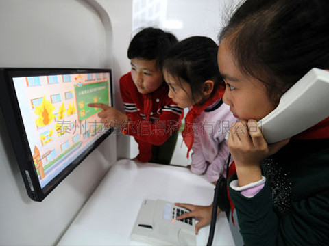 用戶通過(guò)與一體機(jī)相連的電話機(jī)撥號(hào)119,顯示屏上顯示進(jìn)入報(bào)警系統(tǒng)。無(wú)人操作情況下,系統(tǒng)自動(dòng)播放一段火災(zāi)視頻,當(dāng)體驗(yàn)者拿起電話,正確輸入“119”電話。在兩聲“嘟...嘟....”的接通音后,系統(tǒng)內(nèi)的接警員語(yǔ)音提示"你好,119指揮中心,請(qǐng)問(wèn)哪里失火?",顯示屏顯示提示答案,如“新街口國(guó)貿(mào)大廈”(此套系統(tǒng)采用語(yǔ)音識(shí)別系統(tǒng),回答內(nèi)容要嚴(yán)格按照文字提示答案,聲音要洪亮、清晰,速度不宜過(guò)快),共有6輪回答,如果體驗(yàn)者操作全部正確,完成語(yǔ)音回答后,顯示報(bào)警成功并顯示出警視頻。希望通過(guò)這個(gè)系統(tǒng)能讓學(xué)員學(xué)會(huì)報(bào)警.
